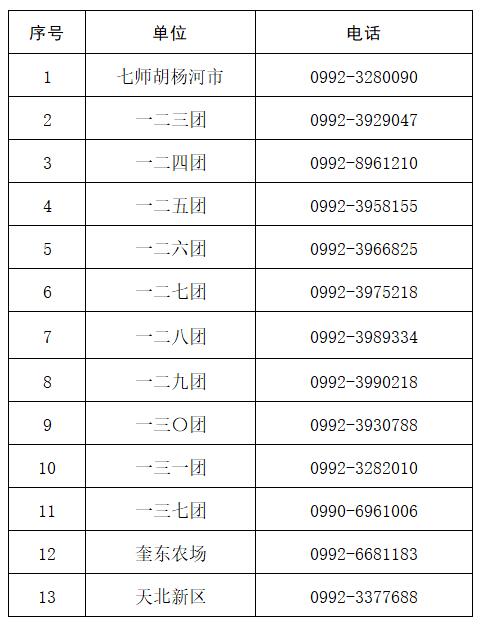 师市及团场疫情防控24小时热线电话